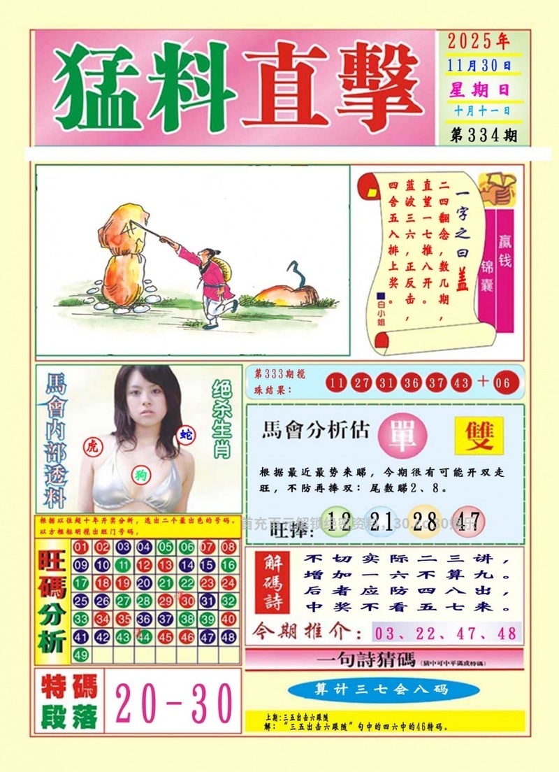 | 334期:天地+二肖〖天肖+羊鸡〗开:猴46准 |